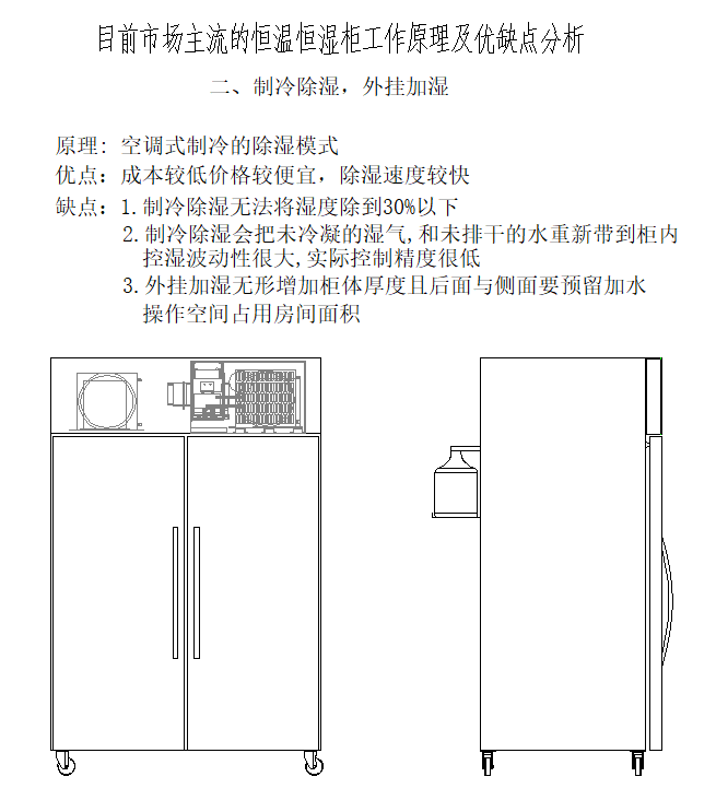 3.外掛加濕無形增加柜體厚度且后面與側(cè)面需要預(yù)留加水操作空間占用房間面積